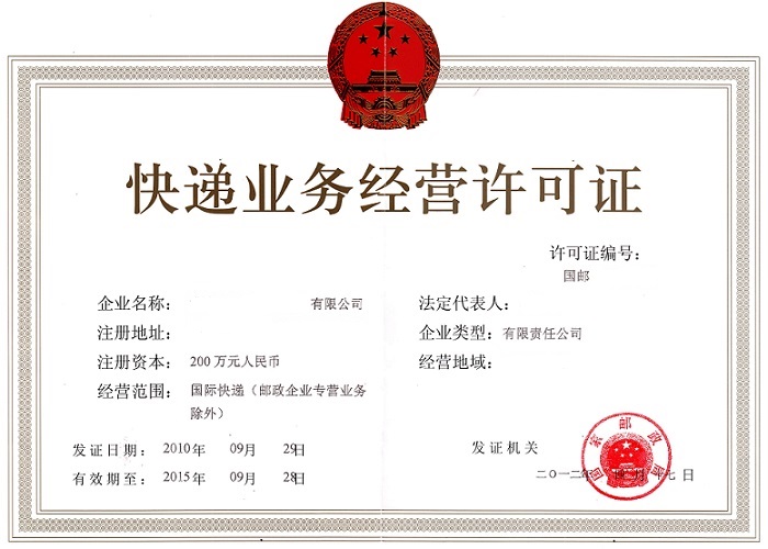 (九) 场地使用证明; 房产性质要为仓储用房;要提供房产证复印件并加盖租赁单位公章。 如为转租房租,还需要转租单位和房东的租赁合同。 (十) 持证快递业务员名录(含分公司、子公司、处理中心);培训及考试由省级邮政管理部门组织。 1)经同城快递业务的,要求持有初级以上快递业务员国家职业资格证书的人员数不低于参与业务人员总数的30%; 2)经营省内异地快递业务的,要求持有初级以上快递业务员国家职业资格证书的人员数不低于参与业务人员总数的40%; 3)经营国际快递业务的企业及其各分支机构快递业务员中持有初级以上快递业务员国家职业资格证书的不低于50%,并有获得专业资格的报关、报检、报验人员。 (十一) 服务质量管理制度; (十二) 业务操作规范; (十三) 安全保障制度和措施; (十四) 加盟合同协议; (十五) 经营代收货款业务安全保障措施(不经营此业务的企业不需提供);在2009年4月24日前设立的国际货运代理企业,如果经营范围里有国际快递业务,提交以下材料可直接申请《快递业务经营许可证》。 1)《快递业务经营许可证》领取申请书; 2)国务院对外贸易主管部门批准或备案文件; 3)工商行政管理部门依法颁发的营业执照; 4)分支机构名录。 一、办理事项名称